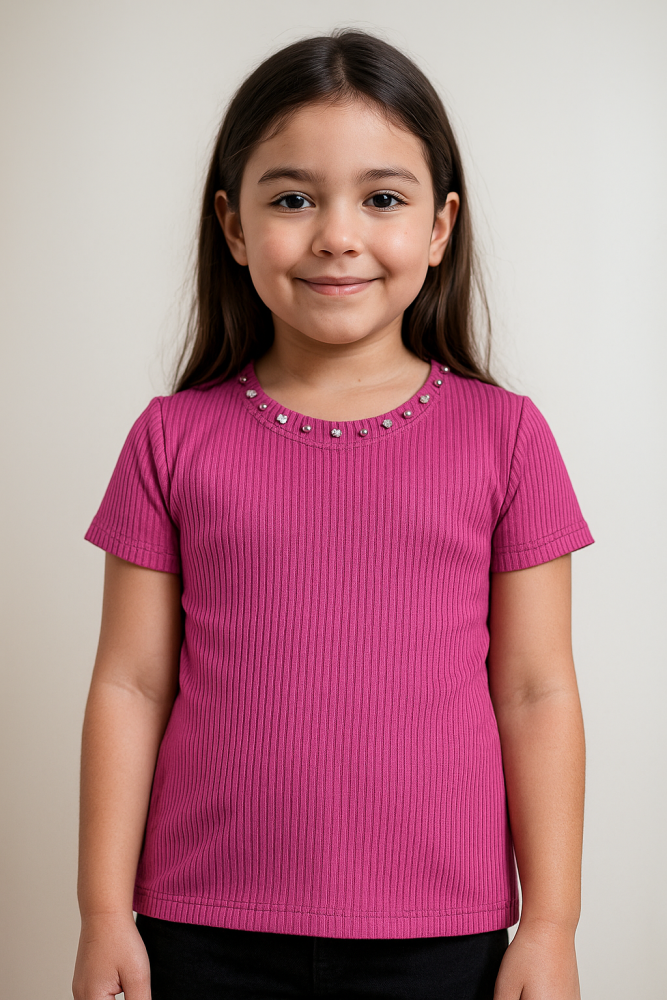 Confeccionada em canelado com toque de algodão, a blusa Pérola Gola combina conforto e sofisticação em uma única peça. Possui aplicação de pedras strass furta-cor intercaladas com pérolas na cor da peça ao redor da gola, trazendo brilho delicado e charme especial.