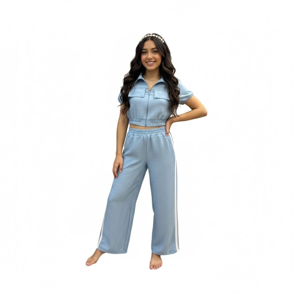 O Conjunto Faixa é confeccionado em tecido Dunas Linho, com toque leve e caimento impecável.