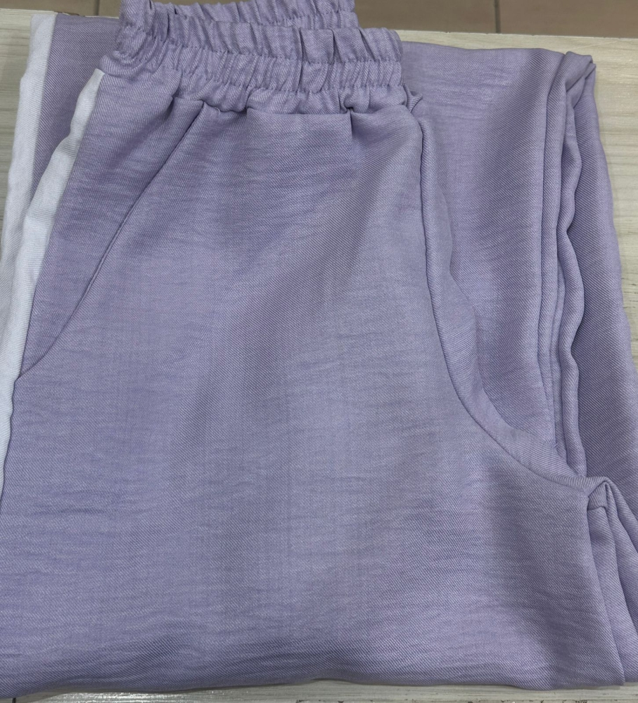 A calça tem modelagem pantalona, com faixa lateral estilo adidas, que deixa o visual moderno e esportivo.